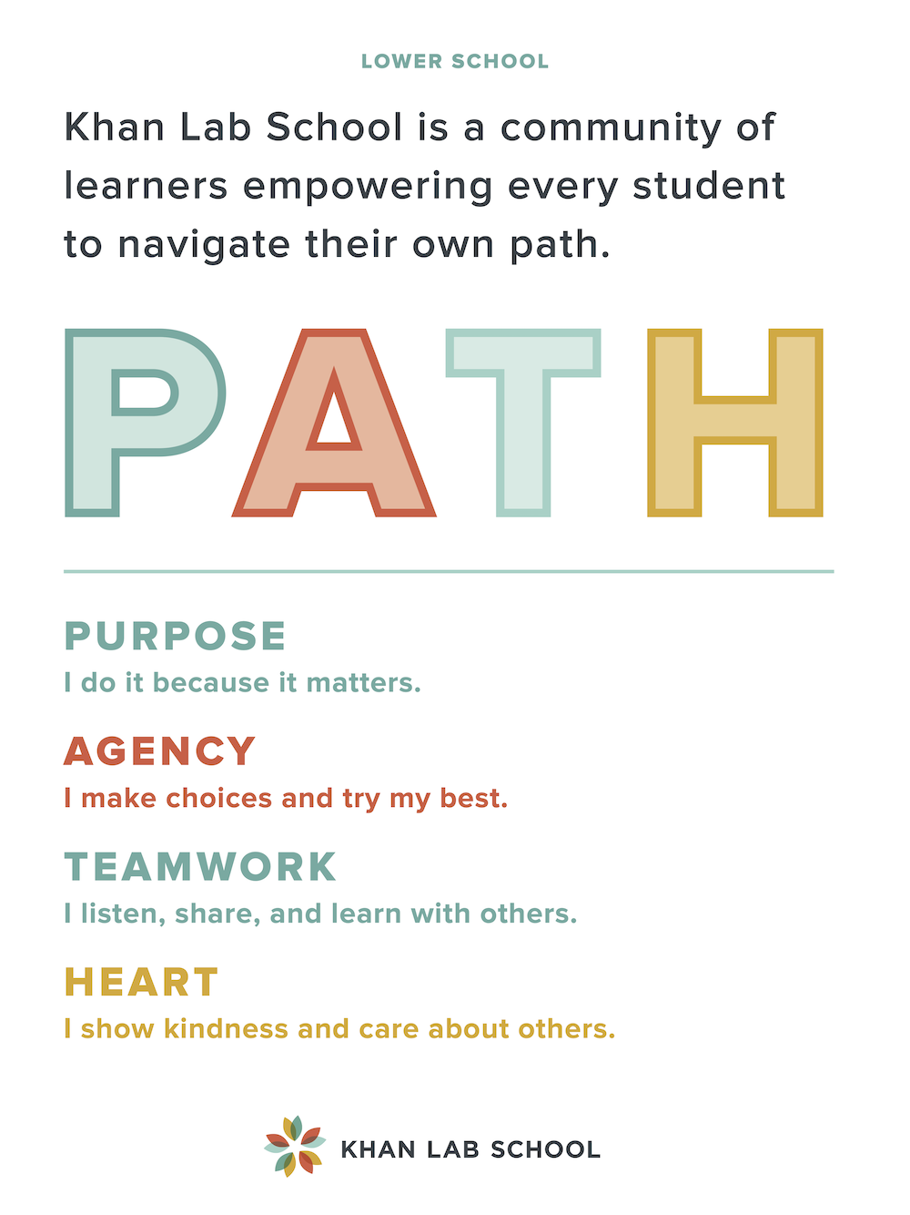 Our PATH Framework - Purpose, Agency, Teamwork, and Heart - guides everything we do, and was developed at Khan Lab School.